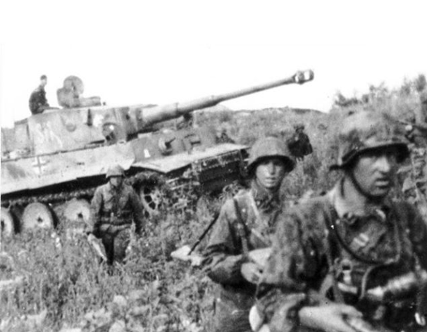 Hill 112 had a commanding view over the area south of Caen and attracted the best units of both combatants. On July 10th, a British combined tank and infantry force had wrested the hill from its SS defenders. That same evening, the hill was subjected to an intense bombardment, then a sharp counterattack by SS-panzergrenadiers. The British were able to drive back the SS with pointblank fire. With daylight, Tiger tanks joined the fray. The weary defenders quickly discovered that their hellish nightmare was not yet over. . .Attacker: German (SS) (SS-Panzer Division 9 / SS-Panzer Division 10 / Kompanie 1, Schwere SS-Panzer Abteilung 102)