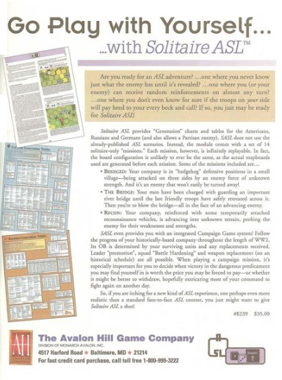 Prior Publication: AH: Solitaire ASL (1st Edition)