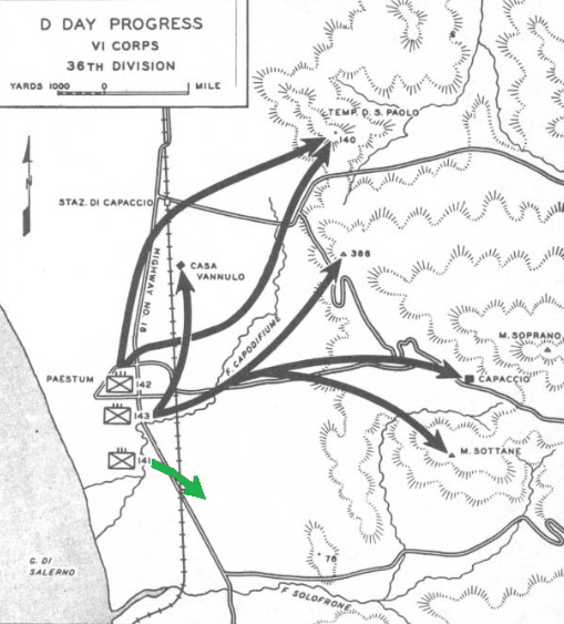 At one minute past midnight, loud speakers on the Allied transports called the boat teams to their stations. Before them lay the beaches of Salerno. The 141st and 142nd Infantry regiments of the U.S. 36th Division would be first ashore, in six waves at the Paestum beaches. The landings went without serious hitch, although tanks of the 16th Panzer - charged with defense of the area - in scattered positions, did make it difficult for some to reach their initial objectives. On "Blue Beach", the 141st had come ashore in good order and were quickly setting up defensive positions on the coastal plain. But the enemy was not idle. Shortly after 0700, three-and-a-half hours after the initial assault had touched shore, a number of Mk IVs probed the left flank of the 141st. Repulsed due to the judicious intervention of the 36th Cavalry Recon Troop, the Germans tried again within the hour -- this time on the right flank.Attacker: German (Panzergrenadier Regiment 64/Panzer Regiment 2)