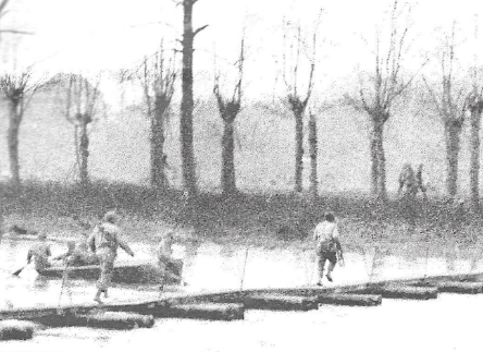 The German resistance had thus far frustrated all Allied attempts to break out of the Cotentin peninsula. Eisenhower now tried shifting the pressure from the British sector in the east to the American sector in the west. The plan called for a breakthrough across the Canal de Vire et Taute north of St. Lo. In the XIX Corps sector, the 30th Infantry Division would lead the attack, with its 120th Infantry Regiment making the initial assault across the canal. Although the canal was shallow enough to be forded in some places, its muddy bottom made wading treacherous. Divisional engineers were assigned to aid the assault troops by laying duckboards as footbridges across the narrow canal once the initial troops had begun the attack.Attacker: American (120th Infantry Regiment/105th Combat Engineer Battalion)