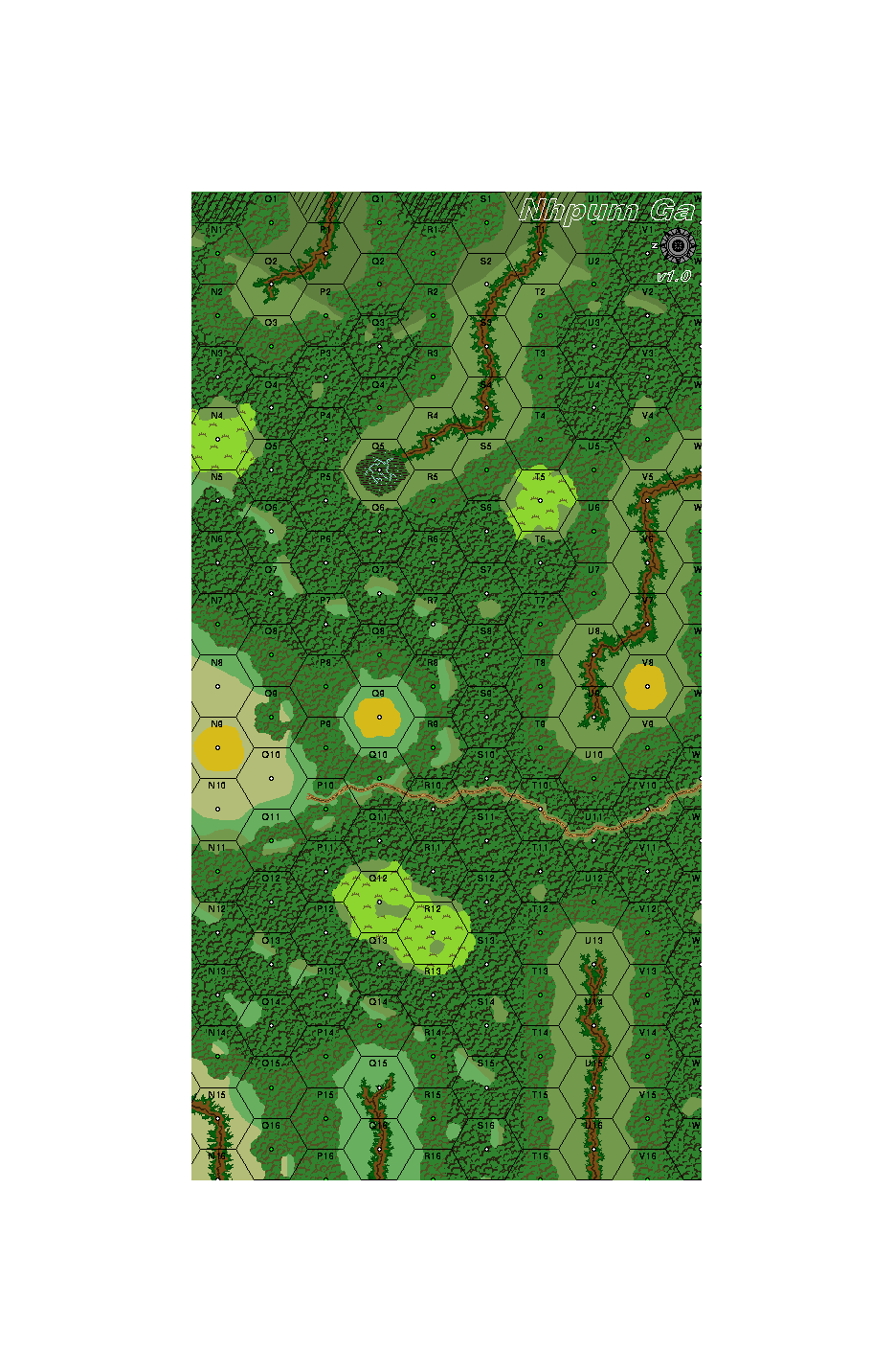 | Hexrow U is misnumbered. The first hex is U1, then a hex with no coordinate. Call that hex "U1.5". | MMP |
