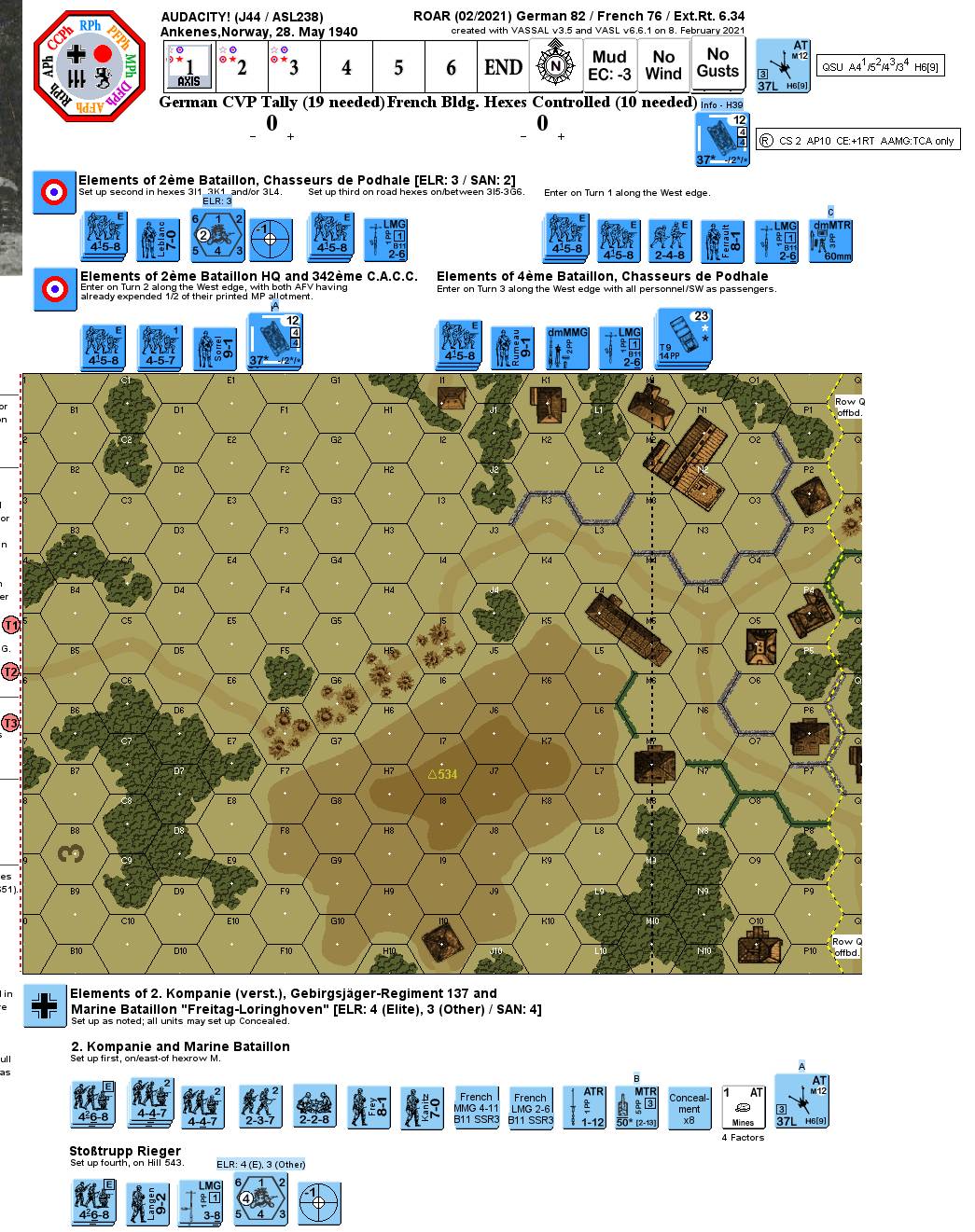 Defender: French (2nd Battalion, Chasseurs de Podhale/2nd Battalion HQ and 342ème C.A.C.C./ 4th Battalion Chasseurs de Podhale)