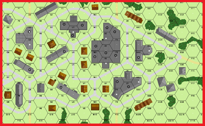 | Misc Rules: | Sequential setup; dr to see who moves first. Russian units in Bldg X3 (Factory B23.74) are Fanatic |
