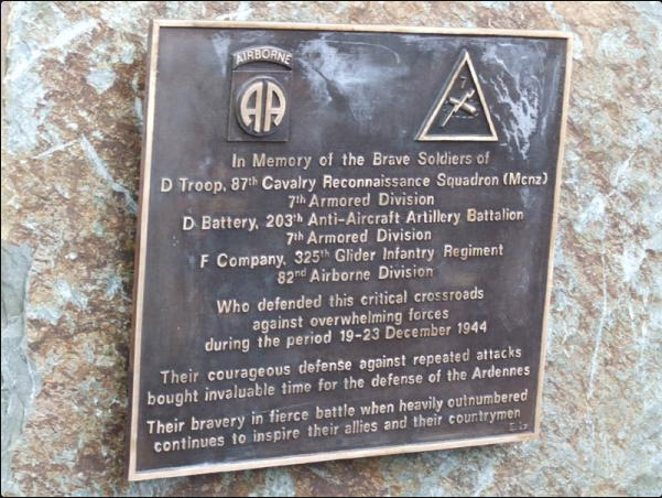 Defender: American (Battery A, 598th Field Artillery Battalion, of the 203rd AAA Batttalion, of D Troop, 87th Mechanized Cavalry Squadron, of Task Force Kane and Richardson of the 3rd Armored Division, and Company F, 325 Glider Infantry Regiment)
