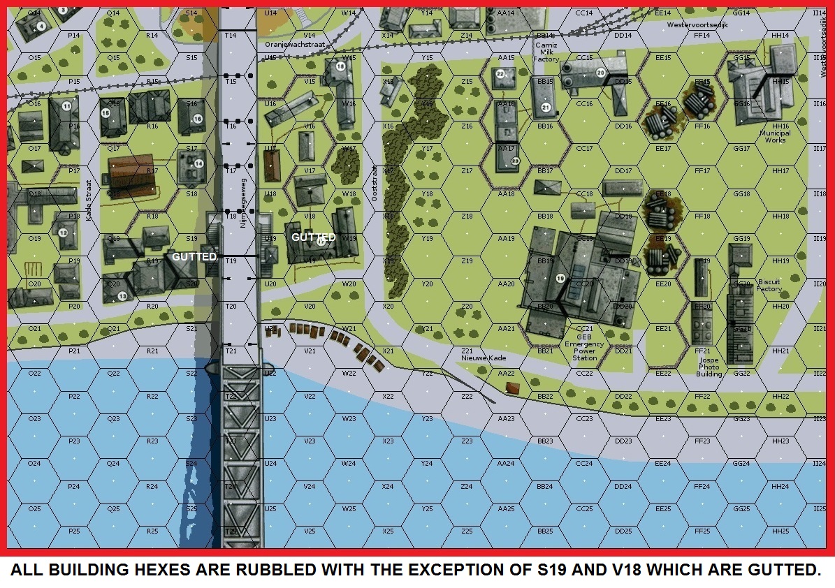 | Misc Rules: | TB SSR. All building hexes Rubbled (Exc: S19 and V18 which are Gutted) , D: Severe AS (A19.131) |