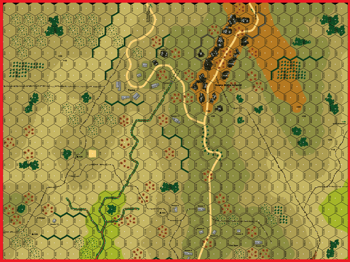 Two and a half days of bitter fighting had apparently not yielded more than a few enemy strongpoints to the depleted battalions of the 351st Infantry. At 0800 on the 14th, the 3rd Battalion attacked from Hill 103 toward Santa Maria Infante along the west slope of the road, with Company I on the left and Company L on the right.Attacker: American (2nd and 3rd Battalions, 351st Infantry Regiment, 88th Infantry Division)