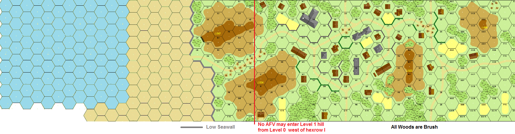 | Misc Rules: | Seaborne Assault (G14). No AFV may enter Level 1 hill west of Hexrow I |