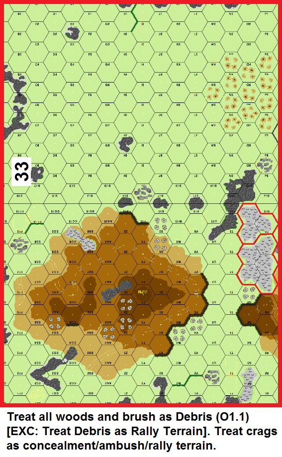 | Misc Rules: | Woods, Brush: Debris. A: FTV (D3.6), D: Cave Complex is double normal size |