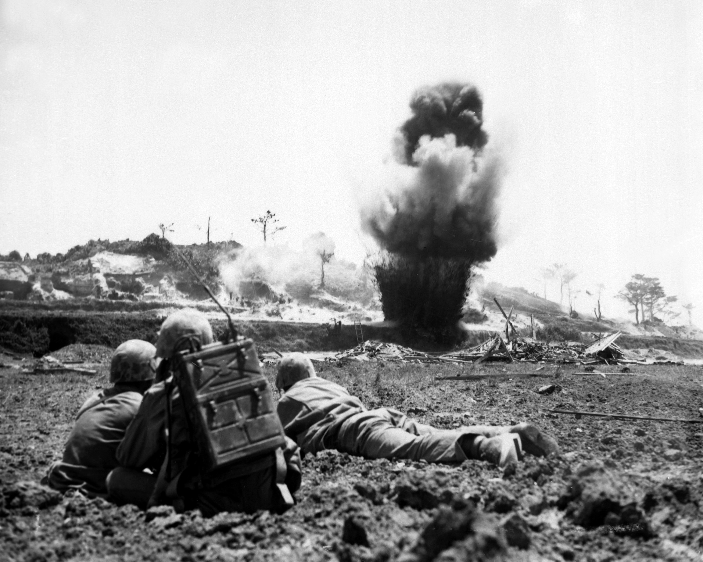 Described by one Marine as a “small pimple of a hill”, Sugar Loaf Hill would turn out to be the costliest battle in the Pacific Campaign for the Marine Corps. The Japanese commander on Okinawa, Lt. General Mitsuru Ushijima, wisely deduced that to defend the entire island was foolhardy. He would give up the northern two-thirds and concentrate his resources on the southern third. Called the Shuri Line, the U.S. Army and Marine Corps would face more concentrated artillery fire than any previous campaign and these artillery attacks would be uncannily accurate, having been ranged on a small hill known on maps as point 51.2. By the evening of 15 May, the Marines had already made several assaults on the hill. Many times they reached the summit only to be driven off by ferocious counterattacks and devastating artillery barrages. Now it was the turn of the 3rd Battalion.Attacker: American (USMC) (Company I, 3rd Battalion, 22nd Marine Regiment and 713th Tank Battalion)