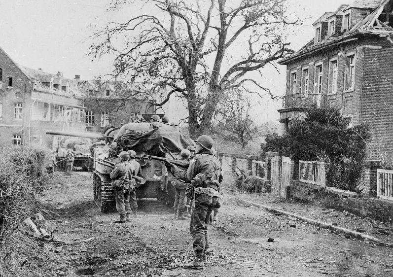 For three days, the "Railsplitters" of 'K' Company were joined in an attack by the men of the armor British Sherwood Rangers Yeomanry. For three days the weather worsened. The rain was so heavy, the mens' foxholes filled up with water, making sleep nearly impossible. During this stretch, the combined assault of American and British arms were repulsed by the defenders. However, the pressure of a constant attack not only took its toll on the attackers; exhausted and battered German troops finally pulled back behind the Würm River to regroup. Despite the retrograde movement of the enemy, the Siegfried Line was far from compromised. 'K' Company was ordered forward, assured of help from tanks from the British 79th Armored Division, and additional support from their own unit in the form of 'I' Company, 333rd Infantry battalion, which had found a crossing further north.Attacker: American / British (Elements of I and K Companies, 333rd Battalion, 84th Infantry Division and the 79th Division and elements of the British Sherwood Rangers Yeomanry)