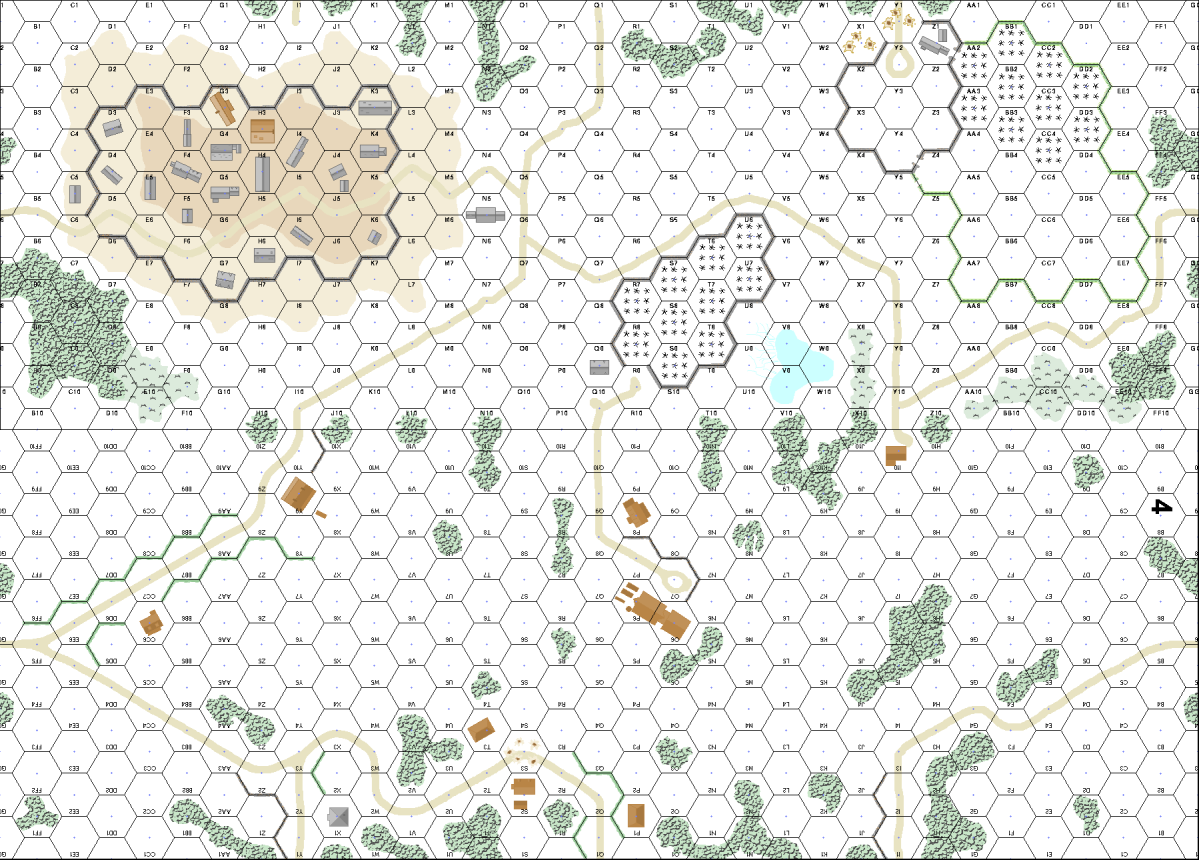 Following the capture of Asturias, Franco's plan to attack Guadalajara was discovered, some say by a Republican spy disguised as a shepherd. The Republicans used the information to launch their own offensive, aimed at the capture of Teruel, on 15 December, a full week before the Guadalajara offensive was to begin. On 15 December, with snow falling, and without artillery or air support, Lister put his 11th Division over to the attack. They promptly encircled Teruel, advancing immediately to the ridge on its west side known as La Muela de Teruel ("Teurel's Tooth"). The commander of the garrison at Teurel, Colonel Rey d'Harcourt, withdrew his men into the buildings for a last stand. . . . The Nationalist mission is either to prevent the Republicans from Controlling seven or more buildings or to have at least a half squad adjacent to the GG5/6 to I10 road at scenario end. The Republican forces outnumber the defenders by roughly two to one, are supported by three BT5 Tanks, and a 75mm Gun. Against a strong attacking force the defenders have some advantages including excellent defensive terrain, a 37mm anti tank gun, two machine guns and good leadership.Attacker: Spanish Republican (1st Brigade, 11th Division 'Lister' and XXth Corps)