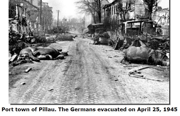 After Königsberg had fallen, the Soviet Army turned its attention to Pillau, which was fanatically defended by the Germans following orders which went out to hold the port at all costs in order to permit every available German ship to take off refugees and soldiers. Some 20,000 German troops fought furiously for six days, inflicting enormous damage on the Russians but with huge casualties on their own side. The Germans finally surrendered Pillau on 26 April 1945.Attacker: Russian (3rd Baltic Front)