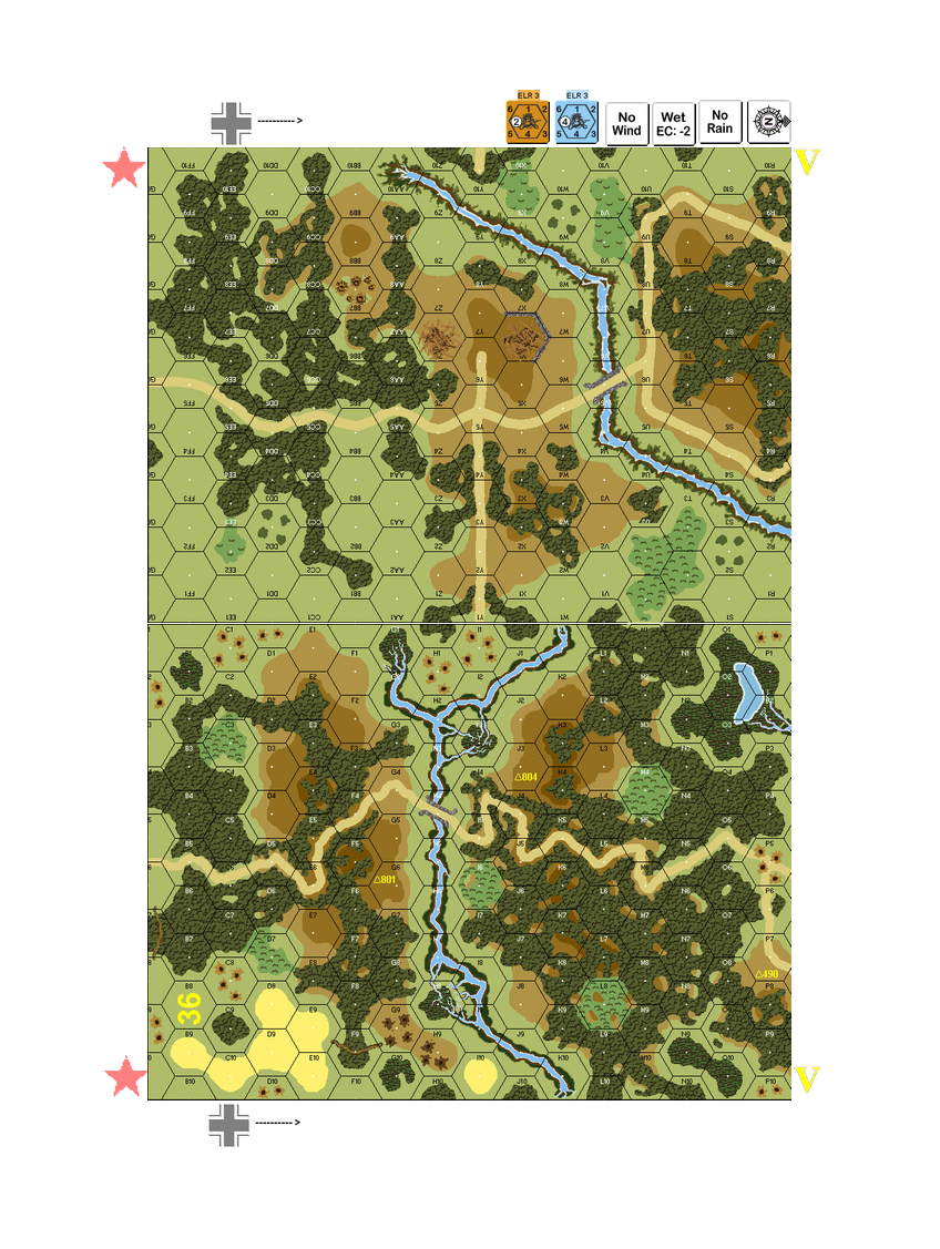 | Misc Rules: | Bldgs: Rubbled, Orchards: Shellholes, HtH (J2.31). D: Hero and 2 HS get -2 DRM on PF checks |