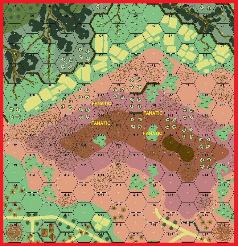 | Misc Rules: | A: NOBA w D: Caves6, Reinforcements must immediately Banzai toward Fanatic hexes |