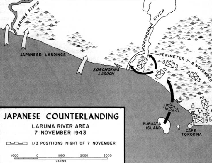 Platoon Leader CG - Japanese troops attempt their own amphibious landing, combined with reinforcements arriving overland from off-map, vs. USMC outpost on the edge of the American beachhead at Empress Augusta Bay, Bougainville.