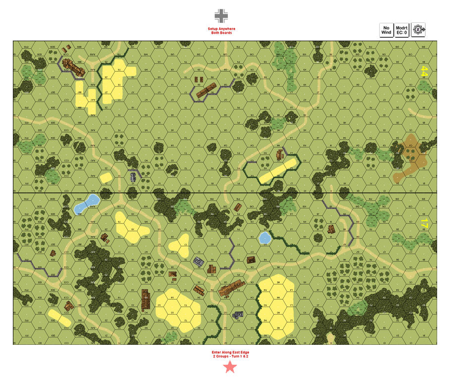 German intelligence indicated the Soviets would launch a powerful offensive with tank forces along the Kovel-Lublin rail line. Reconnaissance revealed the marshes in the area were drying up, making this approach far from ‘tank-proof’ terrain. Convinced of the accuracy of this assessment, Obersturmbanfuhrer Nuhlenkamp moved his Panzers into covered positions in the area around Maciejow with the aim of defeating an enemy attack north of the Kovel-Lublin rail line. An enemy thrust, obviously an armed reconnaissance, was beaten back, allowing the bulk of the Kampfgruppe to change positions in preparation for the expected Russian offensive. The redeployment could not have come too soon. The following day a dust-shrouded ‘steel armada’ appeared over the horizon as the Soviets launched a massive attack on an east-west axis with several hundred tanks. The companies of Wiking stood ready in their well-camouflaged positions, ready to bring concentrated fire to bear.Attacker: Russian (Elements of the 5th Guards Tank Army)