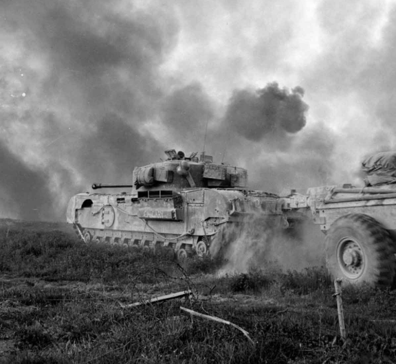 The 15th Scottish Division was quickly called upon to take up the offensive after marching inland from the beaches in the first days of the after invasion. Operation Epsom committed the Scots in a drive to cross the River Orne and to outflank the tough German defenses of Caen. The 6th Royal Scots Fusiliers had trained for four years, waiting for this first chance at glory. Their orders to take the village of St. Manvieu was that first chance. Setting out promptly at 0730 behind a barrage and wearing their “gas capes” against the steady rain, the Fusiliers made quick progress through the cornfields as they approached the town. They suddenly came under intense fire, seemingly from every direction. Casualties among the lead companies mounted quickly before they even reached the outskirts of town. Once there, the Scots faced a determined and well-camouflaged enemy, secure in reinforced buildings and bunkers. With the help of flame-throwing tanks and reinforcements from the King’s Own Scottish Borderers, the Fusiliers moved to clear the tenacious panzer grenadiers. . .Attacker: Scottish (A Company, 6th Royal Scots Fusiliers and 141 RAC, 79th Armored Division)
