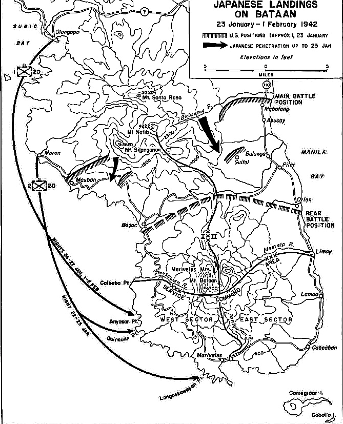 After forcing the Americans out of the Abucay Line, General Nara launched his 65th Brigade at the newly established Orion-Bagac Line. Towards the end of January, three major battles were fought including a major attack on Trail #2. General Nara did not have adequate maps of the area and did not know the location of the American lines. Thusly, his men walked right into the American Main Line of Resistance. However, the Americans were having troubles of their own. The trail was supposed to be defended by the capable 33rd Infantry Regiment. Command confusion resulted in the 33rd relocating, leaving a large hole in the center of the American line. General Bluemel belatedly called up the 2nd Battalion, 32nd Infantry into the abandoned positions, arriving minutes before the Japanese attack.Attacker: Japanese (9th Infantry Regt)