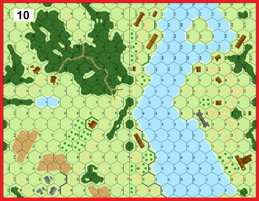 | Only hexrows A through R on board 10 and P through GG on board 8 are in play. River flows to the north. Hills Do not exist, treat all terrain (EXC. River) as rising from Level 0.. | Fanatic website |