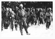 In November 1939, the Soviet Union attacked Finland. Sweden dared not engage in full scale war with its age-old enemy, but allowed volunteer bureaus to be set up. Among the first in the Swedish Voluntary Corps to see action was the 4. Jägarkompaniet. During a reconnaissance mission in the Märkäjärvi area the company was discovered, encircled and attacked by elements of the Russian 122nd Infantry Division. - - - - During 5.5 turns nine Swedish 5-4-8 jägare are being attacked by a large number of unfortunate Russian 4-4-7's. Some of the latter have skis, but most are just slowly trudging forward in the deep snow toward their goal: the Swedish base camp.Attacker: Russian (122nd Rifle Division)