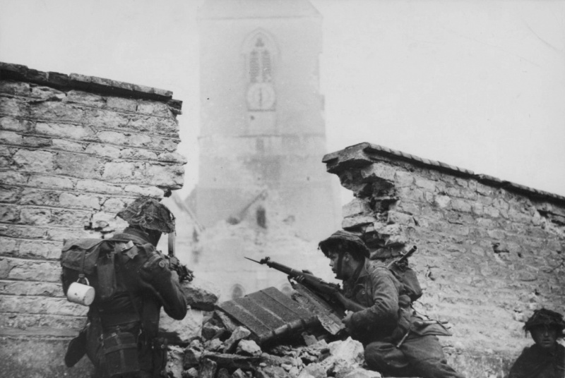 Soldiers of the 6th Battalion Scots Fusiliers during the battle in the French town of Saint-Manvieux Hoppe