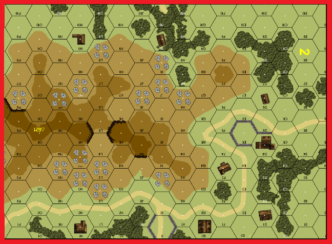 | Misc Rules: | Woods on Hill hexes are Crag. A: Assault Engineers, H-t-H w D: Pillboxes,Trenches, Wire, Mines |
