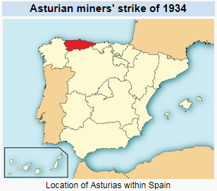The Asturian miners' strike of 1934 was a major strike action, against the entry of the Spanish Confederation of the Autonomous Right (CEDA) into the Spanish government on October 6, which took place in Asturias in northern Spain, that developed into a revolutionary uprising. It was crushed by the Spanish Navy and the Spanish Republican Army, the latter using mainly Moorish troops from Spanish Morocco.Attacker: Spanish Legion (Tercio de la Legion)