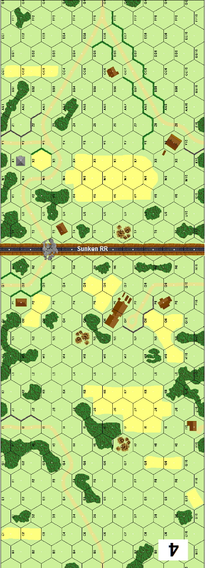 | Misc Rules: | Bocage (B9.5), Sunken RR (B32.1), Rubble is demolished bridge |