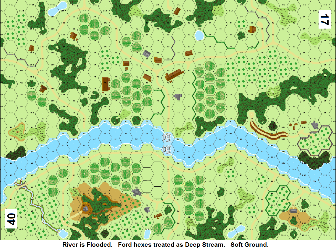 | Misc Rules: | Olive Groves, Treat Grain as Vineyards. AFVs +1 MP each hexside on Soft Ground |