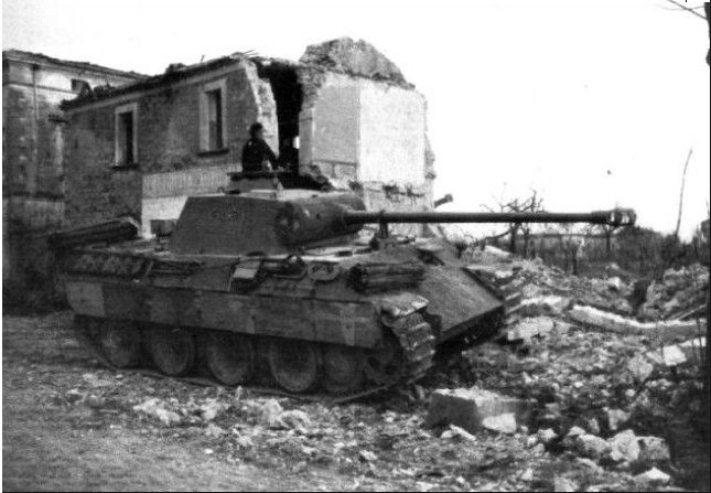 By the evening of 23 May the Anzio beachhead suddenly coming to life and posing a threat to the German Tenth Army's line of communications. As the German defenses crumbled, there was only one possibility of stabilizing the situation in the Liri valley. Six miles northwest of the ruptured Hitler Line, a little river meandered across the floor of the valley. Its name was the Melfa, and if the Germans could hold it, the German Tenth Army might yet be saved. Vokes Force, commanding by Lt-Colonel Vokes and consisting of his British Columbia Dragoons and the Irish Regiment of Canada, would go about halfway to the Melfa and then allow Griffin Force to pass through. Vokes Force plunged into action 0757 hours on 24 May. The B-Squadron, BC Dragoons became the first Allied force to engage Mark V Panther tank. Lieutenant Taylor never forgot his shock at seeing the Panther, but fortunately he spotted the Panther before the German saw him...Attacker: Canadian (Elements of Irish Regiment of Canada with B-Squadron British Columbia Dragoons)