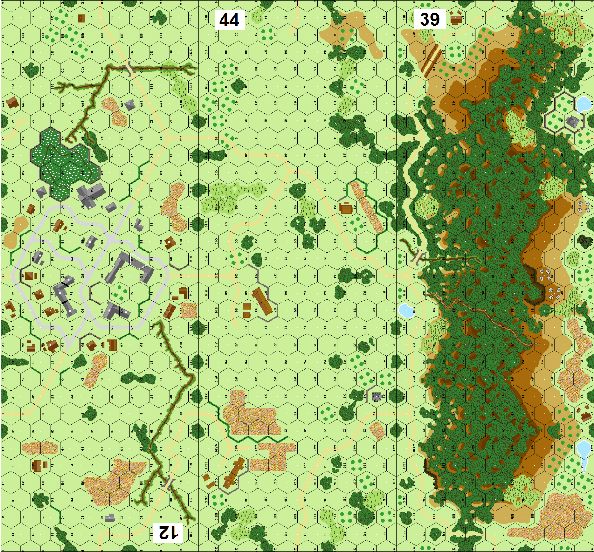 | Misc Rules: | Both players can set up guns in concealment terrain hidden and emplaced. A: Elite, D: FB (B23.9) |