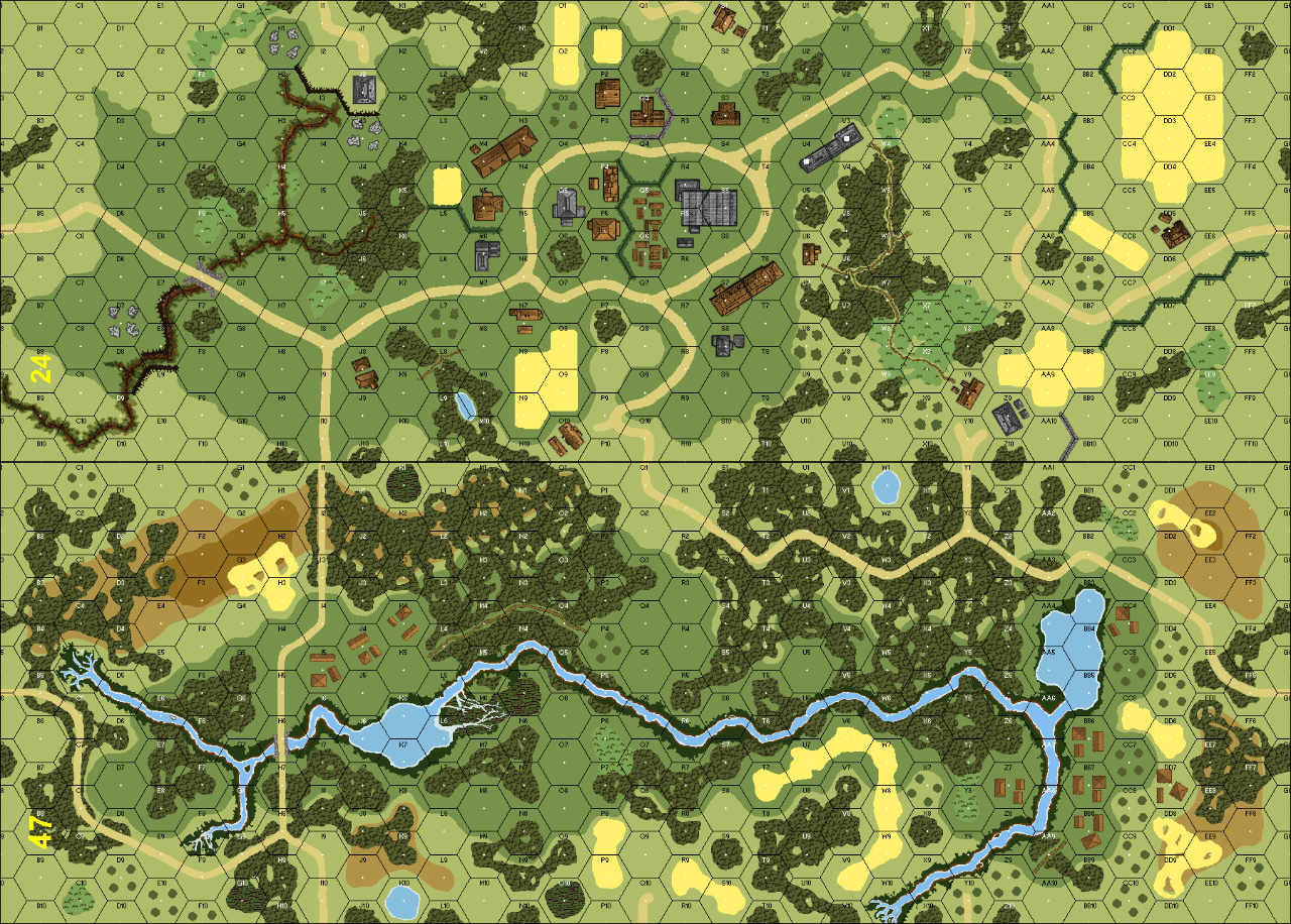 | Misc Rules: | Soft Ground, any hex adj. to stream/pond is Bog terrain. D: AFV crews Inexperienced |