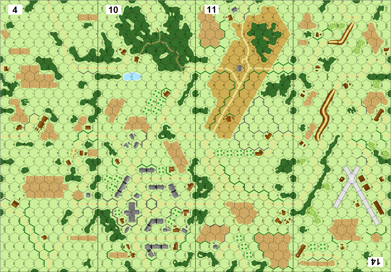 | Misc Rules: | dr determines attacker/defender. German has Air Support. Only north hill on Bd 11 exists. |