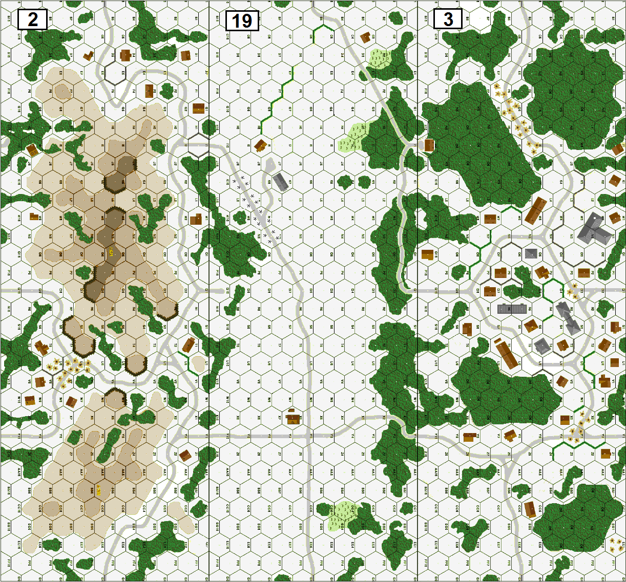 | Misc Rules: | GS, paved roads, hills on Bd 3 are Woods Level 0. D: may boresight, Stealthy |