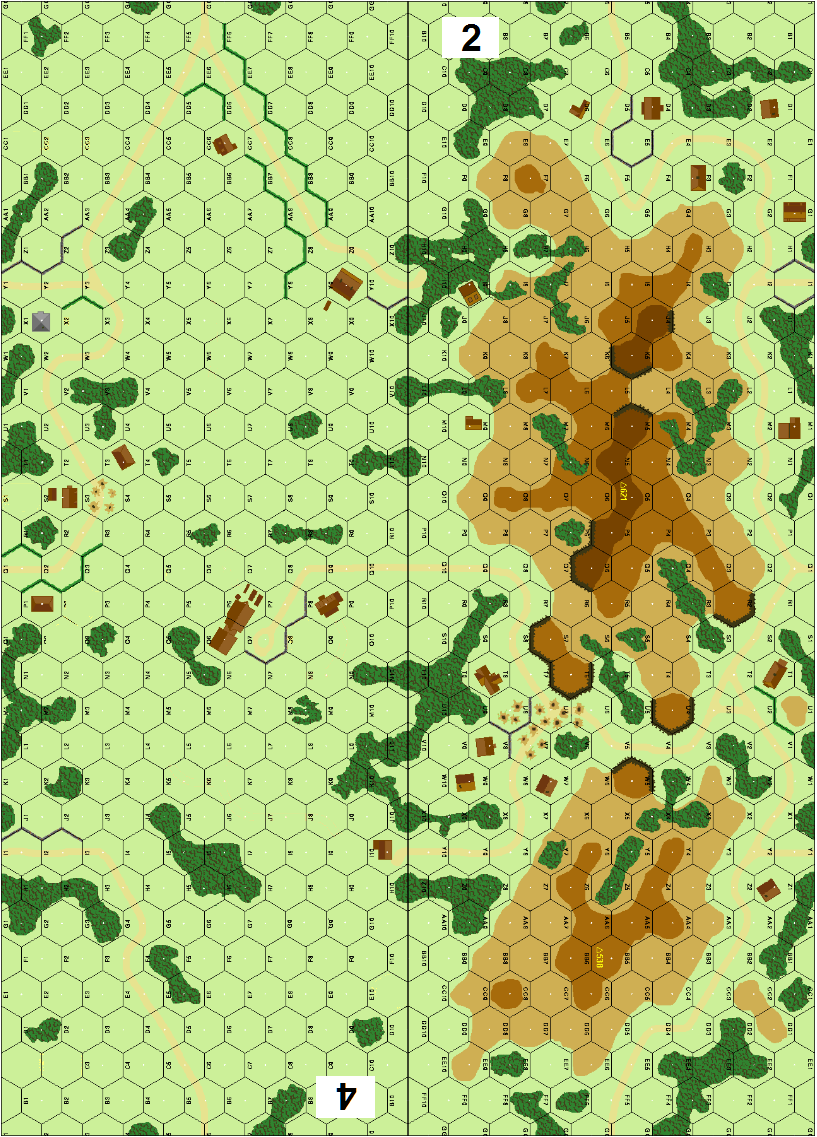 Misc Rules: Bldgs: Wooden. Neither side may make or fire Smoke. A: Air (E7) Turns 3 and 4