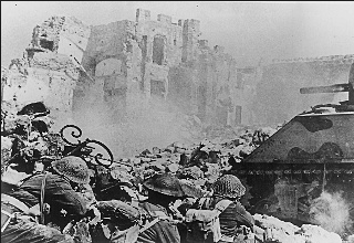 The third assault on Cassino had been underway for a few days. The 25th New Zealand Battalion was given the task of trying to clear Fallschirmjägers from the Hotel Continental where they had taken residence. The 19th New Zealand armoured regiment was finally able to field tanks in support of the infantry. . .Attacker: British (Company B, 25th Battalion, 6th Infantry Brigade, 2nd New Zealand Division and Elements of Squadron A, 19th Armoured Regiment, 4rh Armoured Brigade)