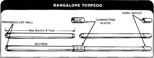 M1A1 Bangalore Torpedo is an antipersonnel mine clearing charge. It clears a footpath 0.6 meters wide.