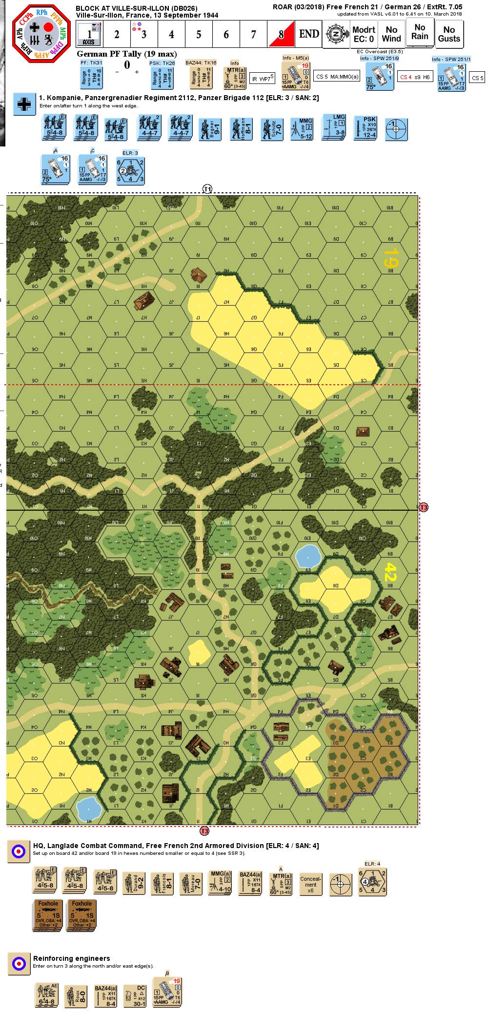 With the Allies having the momentum and the initiative, General Manteuffel was faced with the imminent encirclement of the LXIV Corps in the Epinal Region. He dispatched the 112th Panzer Brigade to clear out the lead elements of the Free French 2nd Armored Division which had penetrated into their rear areas.Attacker: German (No. 1 Kampanie, Panzer Grenadier Regiment 2112, Panzer Brigade 112)