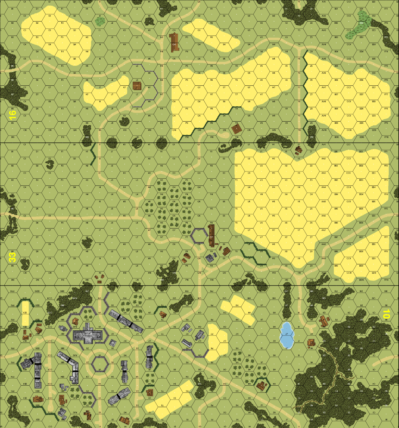 | Victory Conditions : The German player wins if he controls a minimum of 8 buildings on board 10, west of the O hexrow, and earns more VP than the Russian player. Both sides gets CVP and the buildings on board 16 west of hexrow O are woth 1 VP. | Vae Victis 18 |
