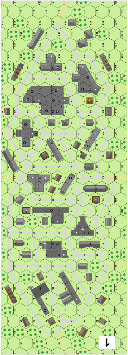 | Misc Rules: | Woods: Orchards, Bldgs: Stone, bldg hexsides like Row Houses. CI (E2.4), A: AS (A19.131) |