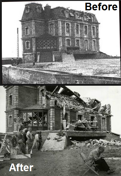 No. 4 Commando was ready to star in the breakout towards Ouistreham from the landing at Sword Beach. Leading them was the tough but well-tailored Groupe Francaise, who brushed aside German strongpoints on the outskirts of the resort town. They pressed on quickly to their main objective, the casino building which dominated the seafront area. Since the Wehrmacht defenders had given up playing roulette there, they had been able to turn the structure into a mini-fortress, resulting in the first French assault being bloodily repulsed. New motivation arrived in the form of some British armor support. The clank of tracks on cobblestones and the slam of the tank's main gun soon stirred the French blood, so the attack resumed in full fury.Attacker: Free French / British (Groupe Francaise, No.4 Commando and reinforcements from British 27 Armoured Brigade)