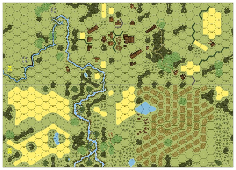 Japanese armor drove right through Chinese covered arcs and laughed as rounds missed or bounced off. Then the Japanese stopped, fired, and killed the Chinese armor. But, even if the armor battle was a wash, with equal losses to both sides, that would have been ok for Japan as they pursued their core strategy of capturing one Chinese squad at a time. They just picked the nearest KMT squad and ganged up on it with 75% of the Japanese OB using MMGs and mortars to break the target and then seal route paths while one infantry element moved adjacent. Copious smoke certainly helped, but the root problem is double CVP for captured units. The Japanese never advanced further than 10 hexes from the board edge since by then (turn five) they had racked up more VP than the Chinese by winning the armor battle, capturing three squads, and taking the eight outlying buildings, which the Chinese cannot afford to defend for fear of getting captured. The Chinese still had their 9-2 leader, seven GO squads, three AFVs, and their gun as well as unchallenged control of the central village on board 24 with its 20 VP bounty, but essentially lost the game because three squads got taken prisoner, rather than KIA.