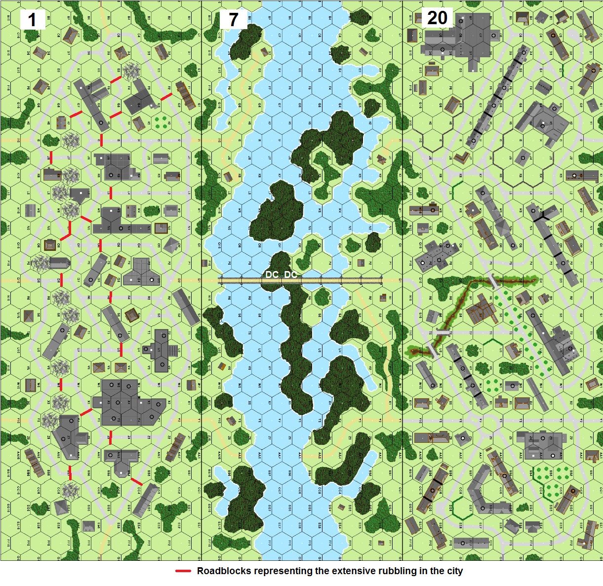 | Misc Rules: | Bldgs: Stone. Set DCs on bridge. D: Sewer (B.8) |