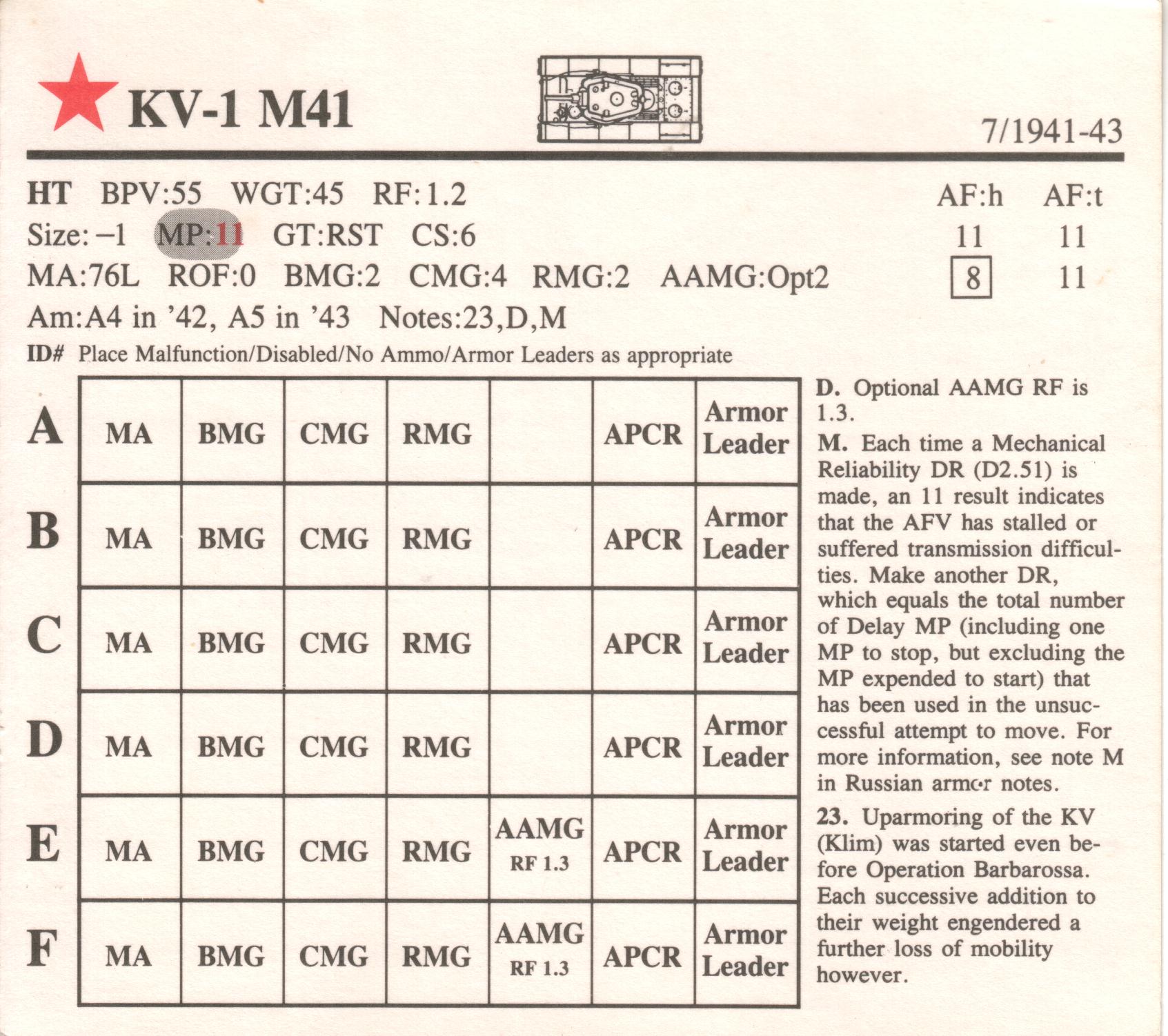 KV-1 M41 AFV Data Card