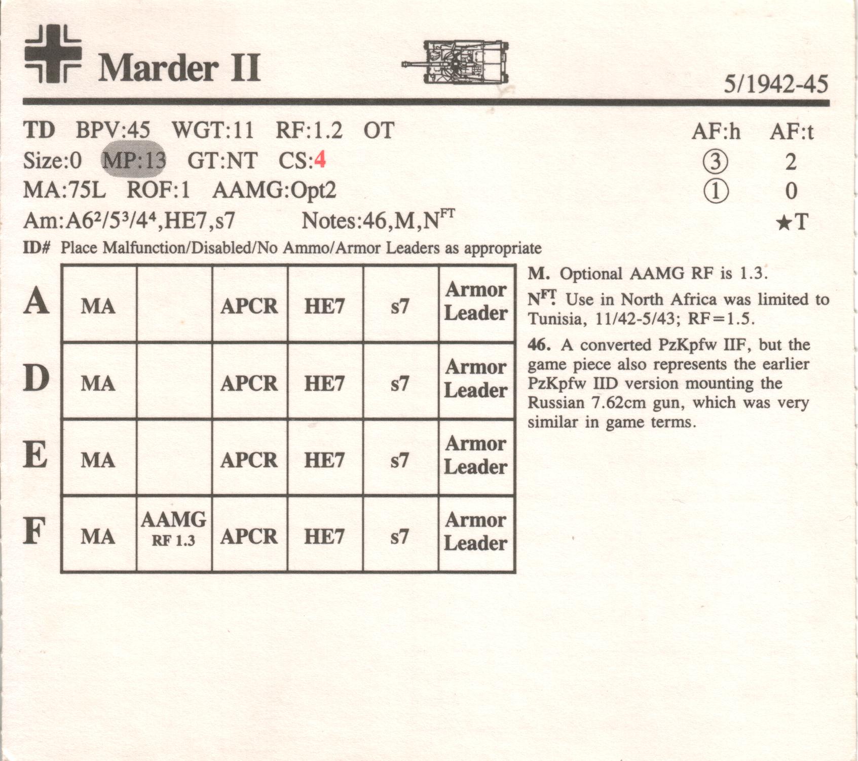 Marder II AFV Data card