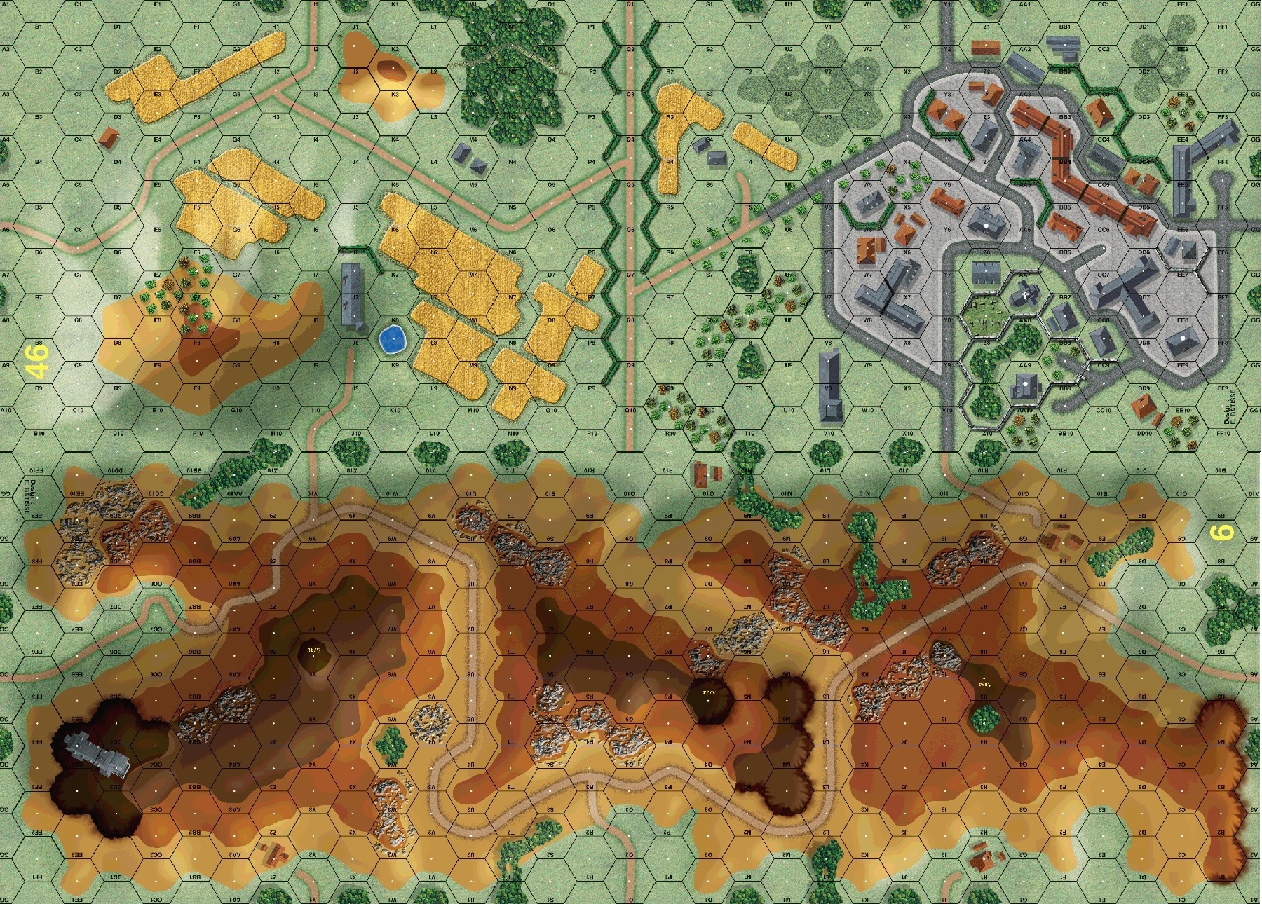 The U.S. 7th Army advanced across western Sicily with incredible speed. To slow the American spearheads, the Italians deployed mobile battlegroups at bottlenecks in the road network. At San Stefano Quisquina, Mobile Group B made a last effort to stop the Americans. - - - - Patton Breaks Loose pits Italian infantry, field pieces and two MR/35 tanks against American infantry and Jeep-borne recon troops. Since attacking with 6-morale troops may put some strain on your personal morale, we recommend at least one Patton quote per Game Turn. Start with: "Nobody ever defended anything successfully, there is only attack and attack and attack some more".Attacker: American (3rd Battalion and 82nd Recon Battalion, 30th Infrantry Regiment)