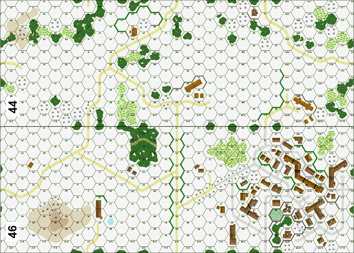 | Misc Rules: | GS, Wooden bldgs. Due to the heavy snow, AFVs pay +1 MP per open ground hex entered |