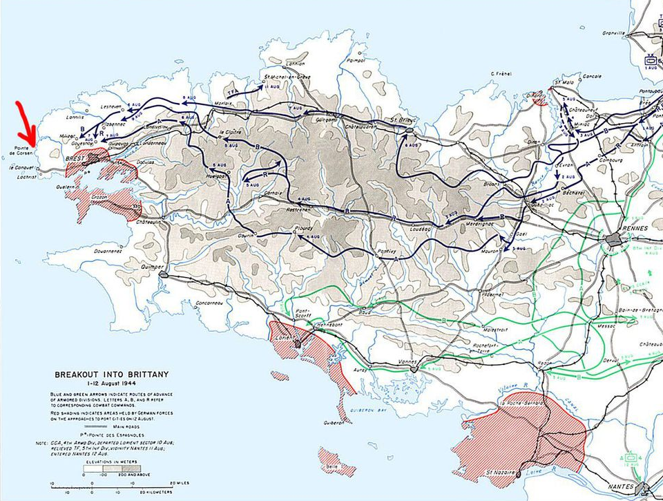 The German fort at Point de Corsen, a rocky promontory five miles north of the Graf Spee Battery that is one of the westernmost points on the French mainland, was garrisoned by a force defined by an American intelligence report as ’50 in number, thirty to fifty years old, mostly coast guardsmen… supplied by fishing boats from Brest.’ On the evening of August 28 a task force comprised of Companies A and C of Rudder’s 2nd Ranger Battalion moved up and prepared to assault that position. It looked like a tough mission, but the task force commander, Capt. Edgar Arnold, was a veteran of the early-morning Omaha Beach assault on D-Day, and compared to that cataclysm, this job would in all likelihood be easy because the enemy garrison apparently did not have its heart in such a hopeless cause. In fact, part of the garrison attempted to escape during the night, and French partisans killed ten of them. . . . This is the only scenario here that does not use either tanks or guns, but it makes up for this with an unusual set of combatants and an Allied force composition that changes each time you play it. Set in France in 1944, a German unit comprised mainly of 2nd line troops is attacked by two separate forces: one force is made up of elite American Rangers cooperating with poorly-trained and poorly-equipped Free French irregulars; the second force is a group of escaped Russian POWs who have rearmed themselves in order to fight the Germans!Attacker: Allies (Company A, 2nd Rangers and Free French of the Interior (FFI) with Russian rearmed POWs)