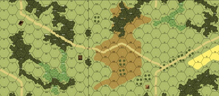 | Misc Rules: | Brush: Orchards (1.1.1). Allies roll die to determine unit count and VP required to gain VC. |