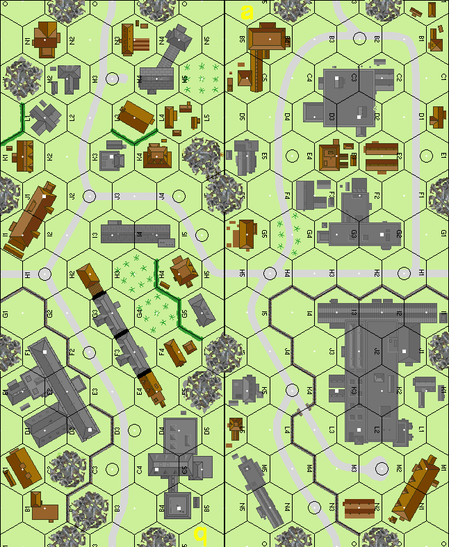 | Misc Rules: | Woods / Brush hexes are Stone Rubble, Road Bonus NA. Both sides hv Sewer Movement. |